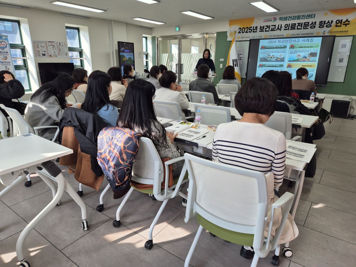 연수는 유·초·중·고·특수·각종학교 보건교사가 참여해 학교 현장에서 자주 발생하는 응급 상황을 중심으로 실습 위주로 진행됐다. 교육 내용은 ▲보건실 응급처치 운영 ▲근골격계 손상 대응 ▲심장·뇌·내분비계 응급처치 등으로 구성해 실제 상황에 즉시 적용 가능한 전문성을 높이는 데 중점을 뒀다.