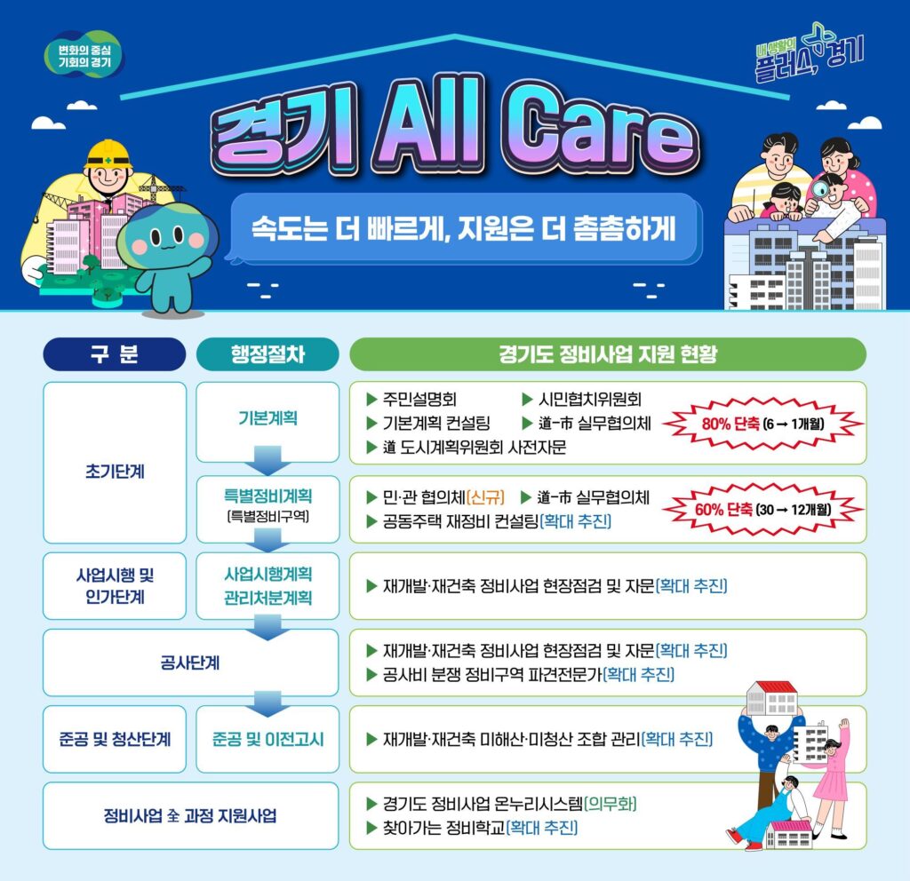 ‘경기 All Care’는 노후 신도시와 원도심 정비사업의 행정 절차를 단축하는 종합 지원 방안이다.