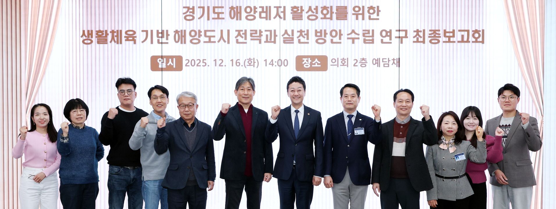 김 의장은 16일 오후 도의회 예담채에서 ‘경기도 해양레저 활성화를 위한 생활체육 기반 해양도시 전략과 실천 방안 수립 연구’ 최종보고회를 열고, 경기도 해양레저 정책의 방향 전환 필요성을 강조했다.