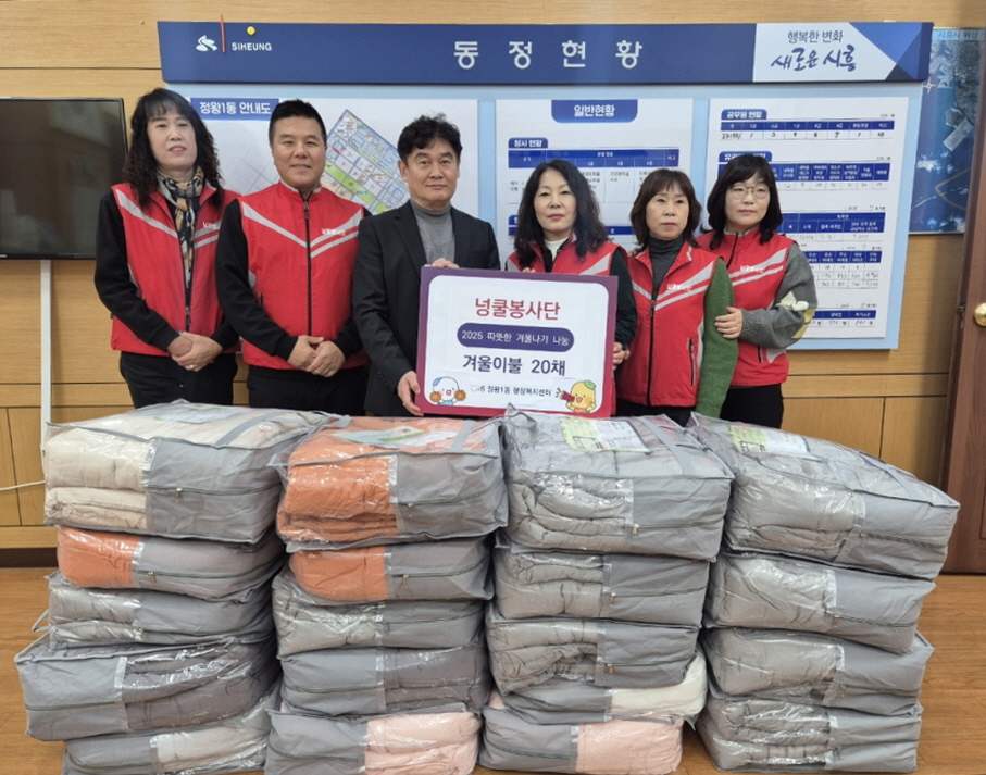 시흥시 시민봉사단체 ‘넝쿨봉사단’이 지난 12월 1일 추위에 어려움을 겪는 정왕1동 저소득 가구를 위해 겨울 이불 20채를 전달하며 지역사회에 따뜻한 정을 나눴다.