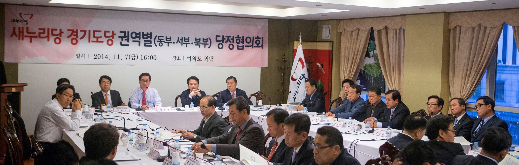 [사진] 함진규 새누리당 경기도당 위원장과 남경필 경기도지사가 주재하는 새누리당 권역별 당정협의회에 시흥시장이 참석, 회의를 진행하고 있는 모습이다. 뒷줄 가운데 흰 와이셔츠를 입은 함진규 의원과 바로 옆 남경필 도지사와 오른쪽 뒤편에 김윤식 시흥시장의 모습도 보인다.