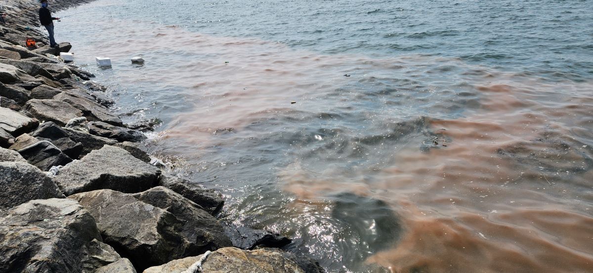 최근 안산 시화나래휴게소 인근 해역에서 관찰된 주황색 띠 현상이 독성이 없는 ‘야광충’ 대량 번식으로 확인됐다.