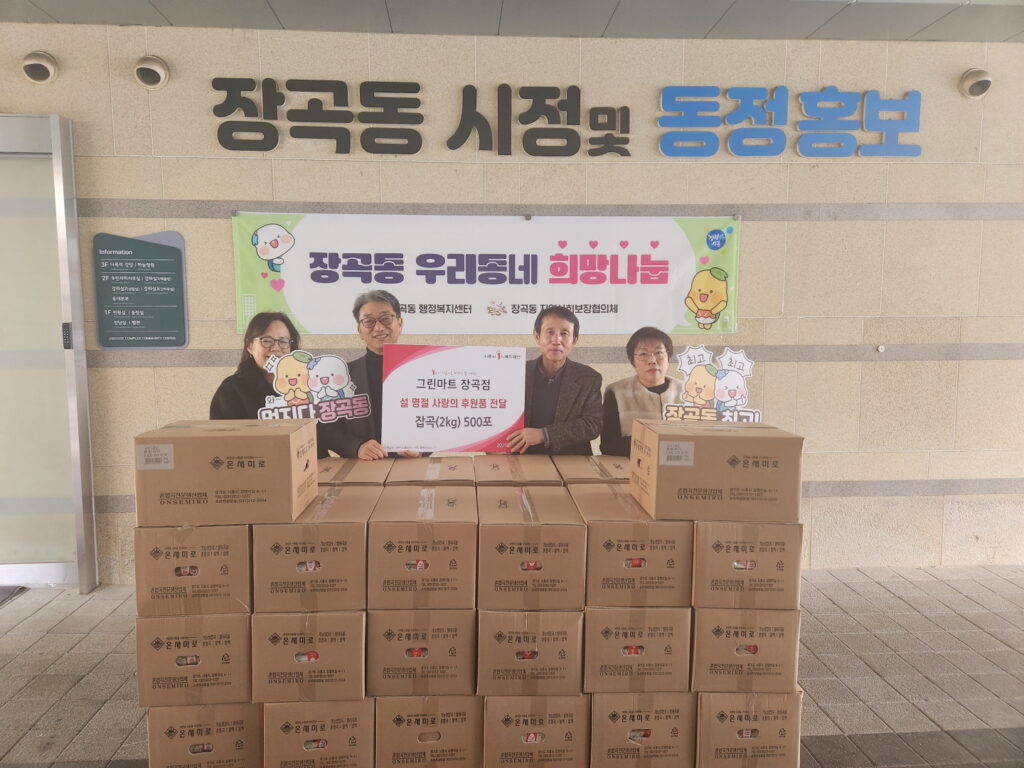 명절 상차림을 돕는 식품 기탁도 이어졌다. 그린마트 장곡점은 잡곡 500포를, 여의도순복음시흥교회는 백미 10kg 90포를 각각 전달했다. 기탁된 물품은 저소득 가구와 독거노인, 장애인 가구 등에 지원돼 설 명절 식탁에 온기를 더하게 된다.