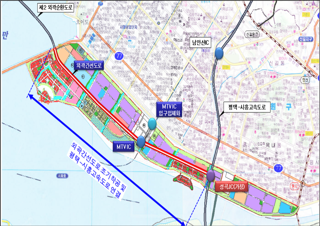 게다가 수자원공사가 기획하고 있는 제2외곽고속도로 MTV구간의 경우에도 성곡JC와 연결되는 북서쪽 구간에 MTVIC를 만드는 것도 시흥안산스마트허브 전체 물류흐름을 더디게 만들 수 있어 성곡JC를 성곡IC로 만드는 방안이 훨씬 좋은 방안이라는 주장이다.