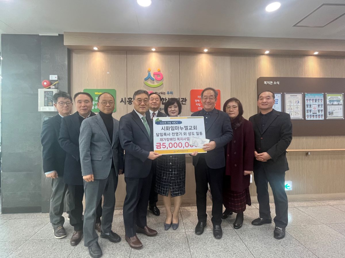 시화임마누엘교회(담임목사 전영기)는 1월 7일, 시흥시 관내 장애인이 지역사회에서 이웃과 함께 살아갈 수 있도록 돕기 위해 후원금을 지정 기탁했다. 이번 나눔은 장애인과 비장애인이 함께 어울리는 지역공동체 조성을 위한 실천의 일환으로 마련됐다.