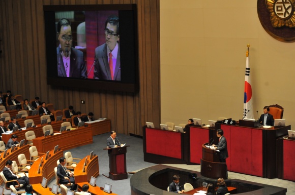 [사진] 사진은 대정부 질문에 나선 함진규 의원의 모습