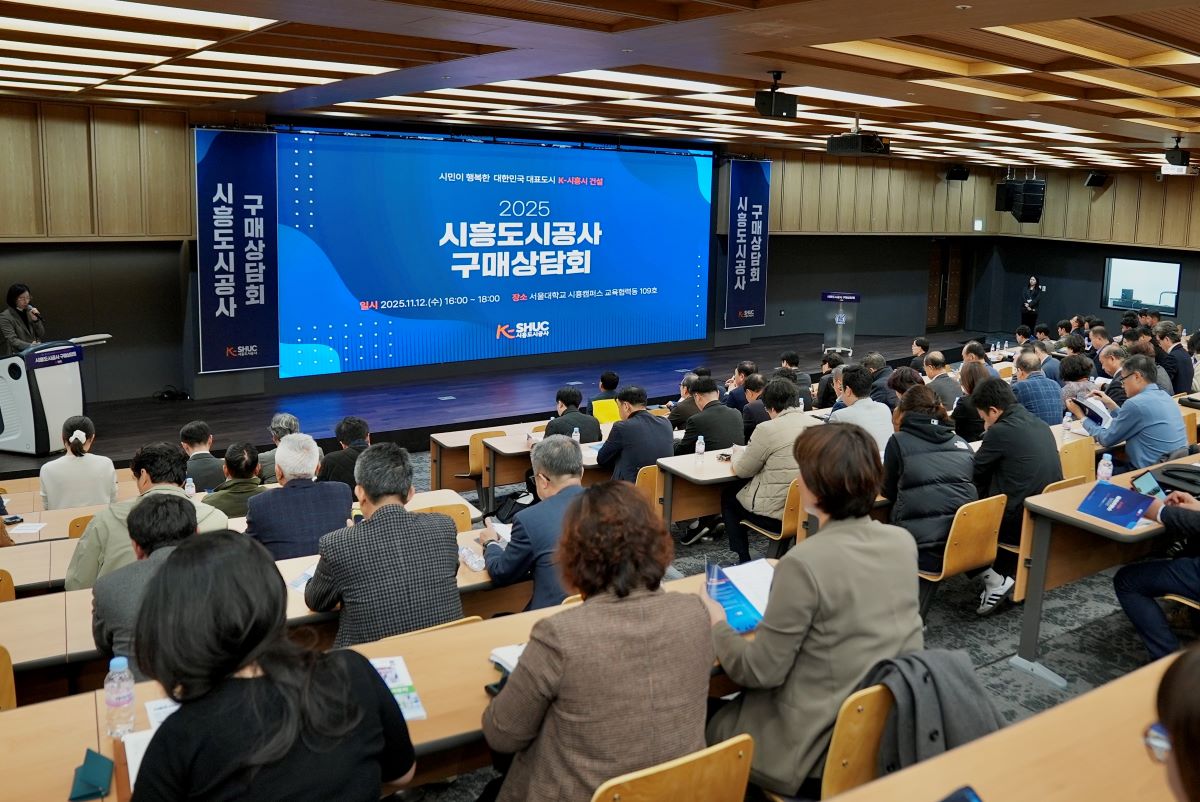 시흥도시공사(사장 유병욱)는 지난 12일 서울대학교 시흥캠퍼스에서 ‘지역사회와 함께하는 구매상담회’를 개최했다. 이번 행사는 시흥시 관내 중소기업 및 소상공인의 판로 확대와 지역경제 활성화를 위한 자리로, 100여 개 지역기업이 참여해 공사 각 부서와 1:1 맞춤형 상담을 진행했다.