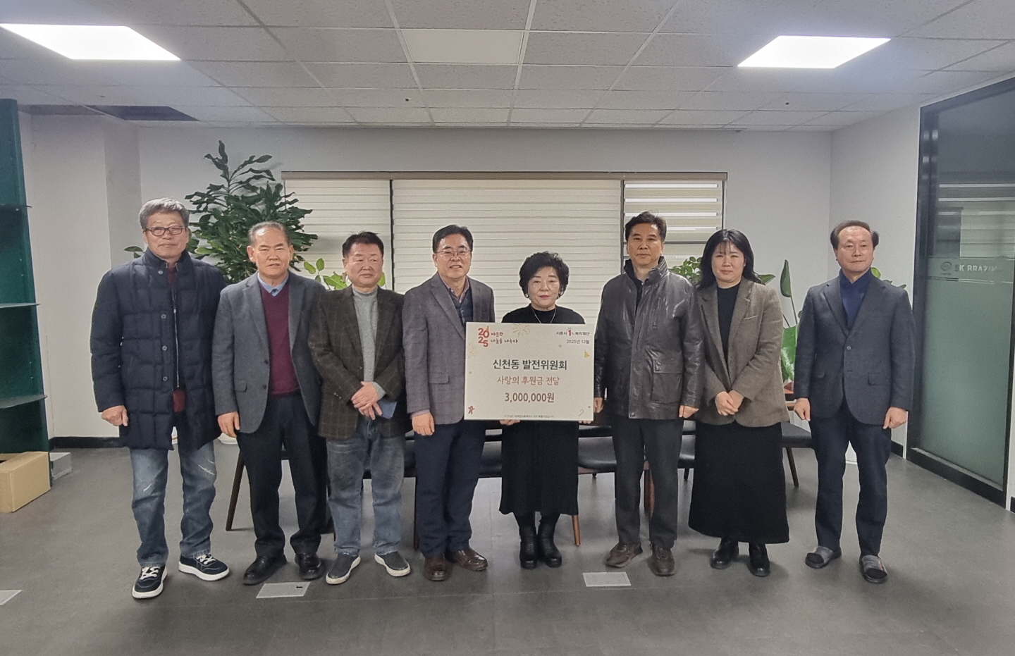 지역사회 발전을 위해 뜻을 모은 신천동 발전위원회가 지난 12월 23일 신천동 취약계층 지원을 위한 후원금 300만 원을 전달하며 연말 나눔에 동참했다.