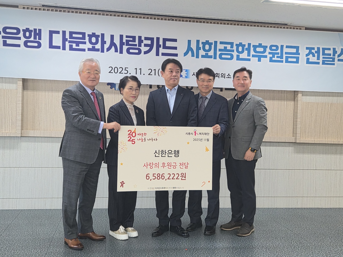 신한은행이 11월 21일 시흥시1%복지재단에 다문화가정을 위한 사회공헌 후원금 6,586,222원을 전달했다. 이번 후원금은 ‘다문화사랑카드’ 사용을 통해 적립된 포인트로 조성된 것으로, 여러 기업이 법인카드를 사용하며 쌓인 포인트를 의미 있는 나눔으로 연결한 것이다.