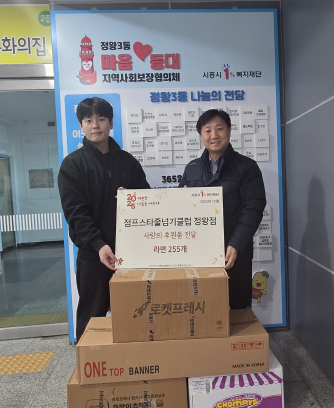 점프스타줄넘기클럽 정왕점은 지난 12월 29일 정왕3동 지역사회보장협의체에 라면 255개를 전달했다. 이번 후원은 학원생들이 저소득 결식 우려 가구를 돕기 위해 직접 라면을 모아 마련한 것으로, 나눔의 의미를 더했다. 김영준 원장은 “아이들의 정성이 이웃들에게 힘이 되길 바란다”며 “앞으로도 아이들의 마음이 건강하게 자랄 수 있도록 노력하겠다”고 말했다. 양미현 정왕3동장은 “소중한 후원품이 꼭 필요한 이웃에게 잘 전달되도록 하겠다”고 전했다.