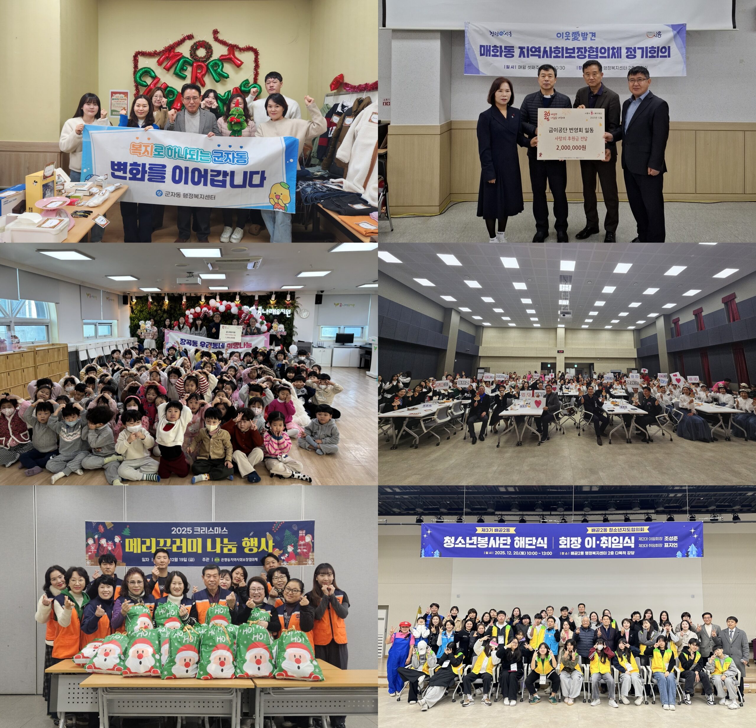 정왕1동 주민자치회도 프로그램 성과공유회를 열어 난타·댄스·합창과 전시를 통해 주민 화합의 장을 마련했다. 은행동 지역사회보장협의체는 크리스마스를 맞아 한부모·장애아동 가정에 ‘메리꾸러미’를 전달하며 정서적 위로를 전했다.