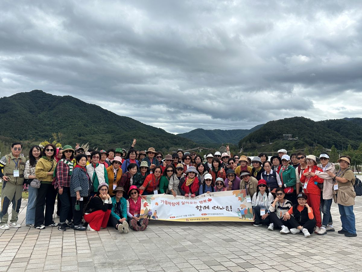 작은자리종합사회복지관(관장 손현미)은 지난 10월 16일, 평생학습 어르신 프로그램 ‘작은자리대학’ 회원 70여 명과 함께 포천 한탄강생태경관단지로 가을 나들이를 다녀왔다.