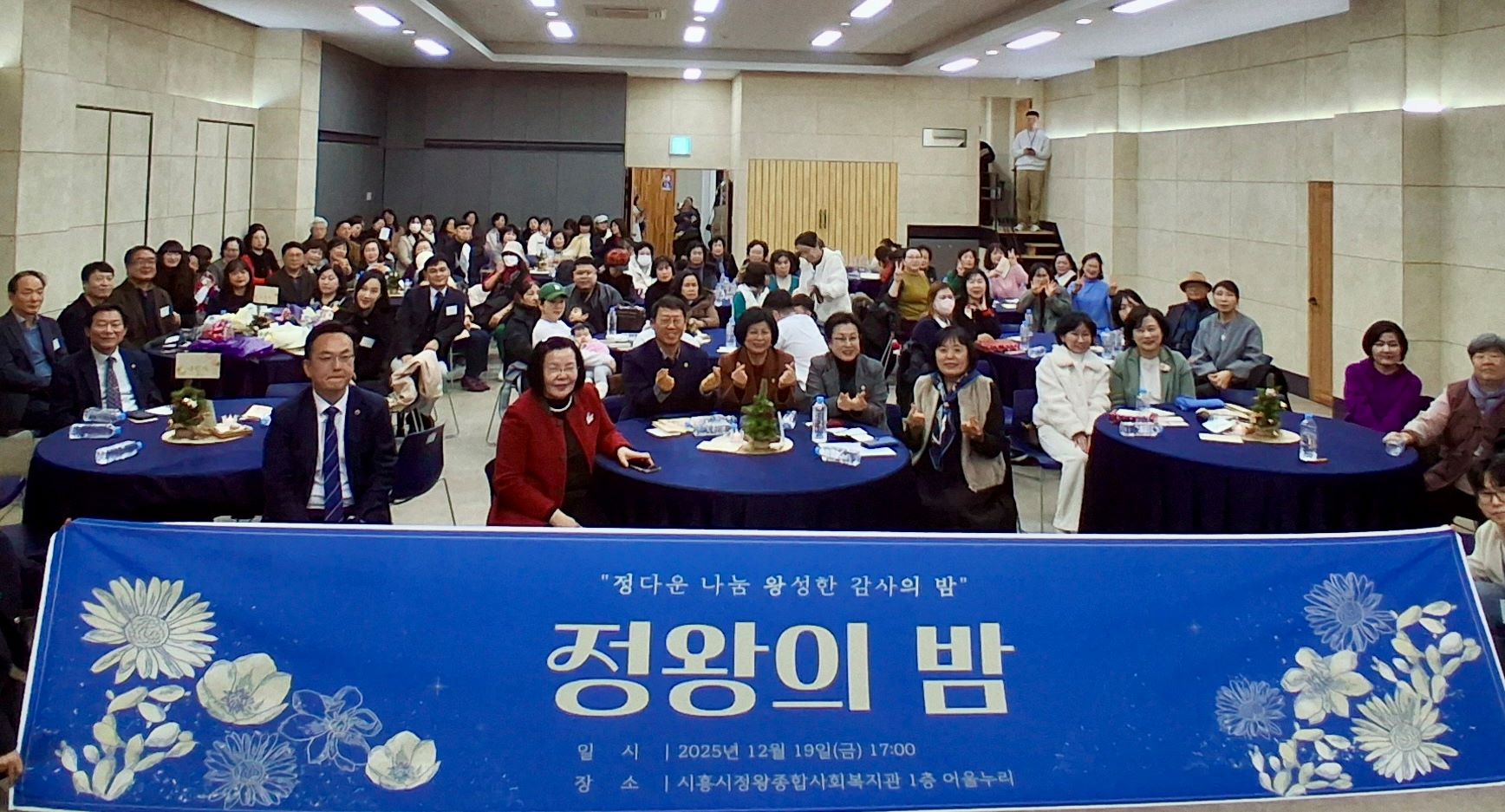 사회복지법인 열린자리 시흥시정왕종합사회복지관은 12월 19일 오후 복지관에서 2025년 송년행사 ‘정왕의 밤–정다운 나눔, 왕성한 감사의 밤’을 개최했다. 이날 행사에는 임병택 시흥시장을 비롯해 후원자와 자원봉사자, 지역 내빈 등 약 100명이 참석해 한 해 동안 이어진 나눔과 봉사의 의미를 되새겼다.
