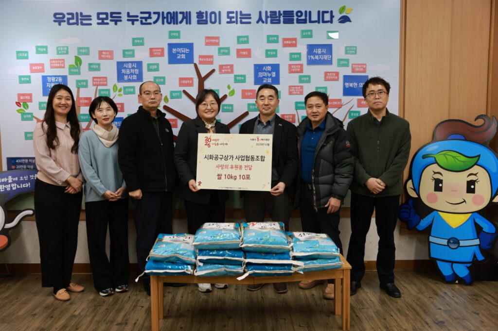 시화공구상가 사업협동조합은 이날 쌀 10kg 10포를 기탁하며 이웃사랑을 실천했다. 안산·시흥을 대표하는 종합산업용품단지인 시화공구상가단지를 관리하는 조합은 매년 기부와 사회공헌 활동을 이어오며 지역사회에 모범을 보이고 있다. 오근호 이사장은 “작은 정성이지만 어려운 이웃들의 따뜻한 한 끼에 보탬이 되길 바란다”며 “앞으로도 지역과 함께 성장하며 나눔을 지속하겠다”고 말했다.