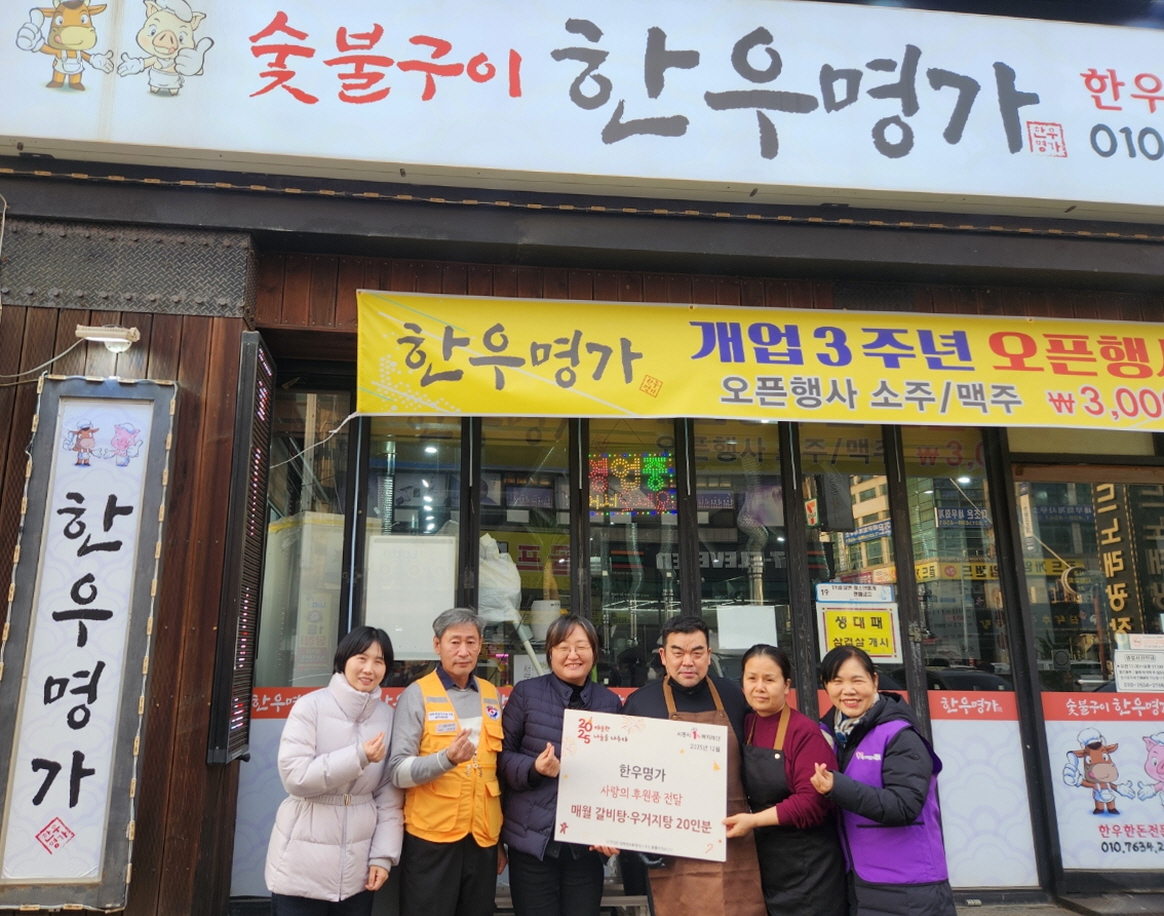 시흥시 정왕2동에 위치한 한우명가가 지역사회 취약계층을 위한 음식 나눔을 꾸준히 이어가며 따뜻한 연말 분위기를 전하고 있다.
