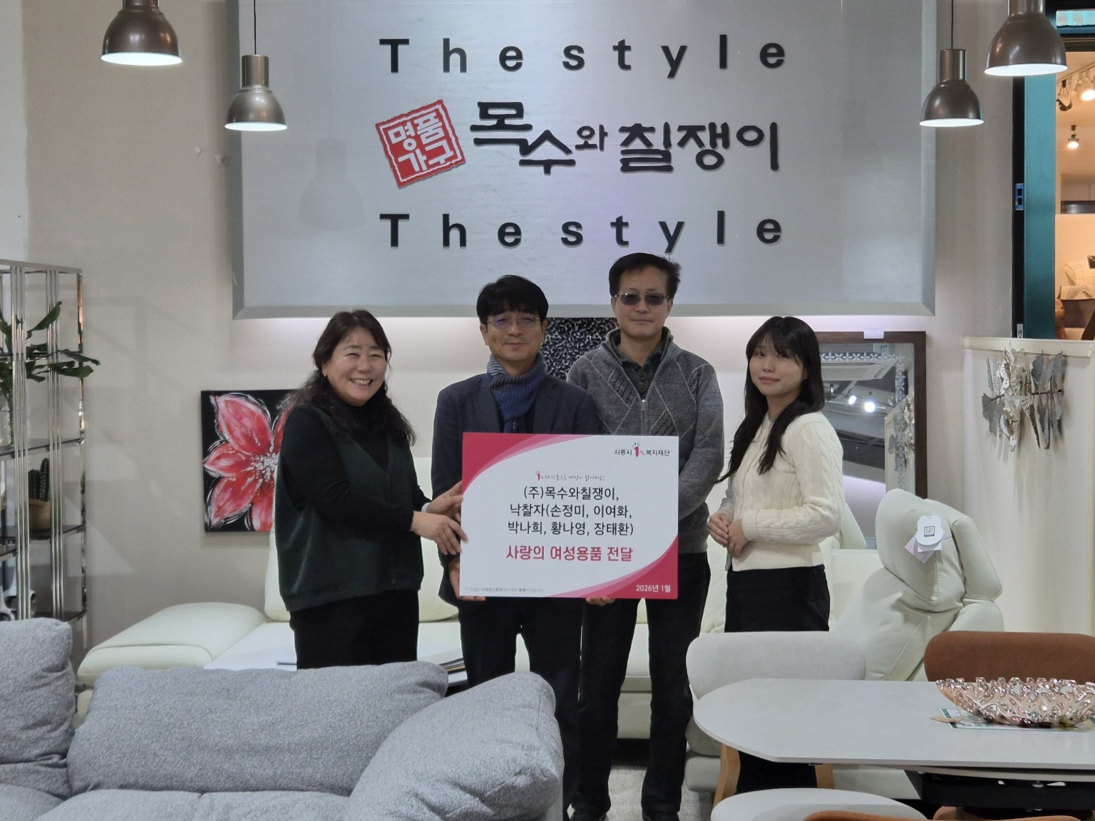 지난 1월 30일 ㈜목수와칠쟁이는 시흥시1%복지재단에 여성용품을 기부하는 전달식을 진행했다. 이번 후원품은 2025년 3~4분기 가구 경매 낙찰자들이 낙찰 금액의 30%를 기부해 조성된 기부금으로 마련됐다. 기부에는 손정미, 이여화, 박나희, 황나영, 장태환 씨 등 5명의 낙찰자가 참여했으며, 전달된 여성용품은 관내 생활시설에 배부돼 시설을 이용하는 여성들의 일상과 건강을 지원하는 데 사용될 예정이다.