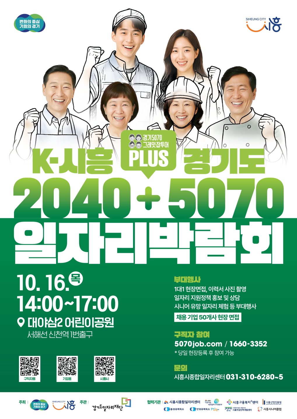 시흥시가 전 세대를 아우르는 대규모 일자리박람회 ‘2025년 K-시흥2040 플러스 경기도5070 일자리박람회’를 10월 16일 대야삼2어린이공원에서 개최한다. (사진제공 / 시흥시청)