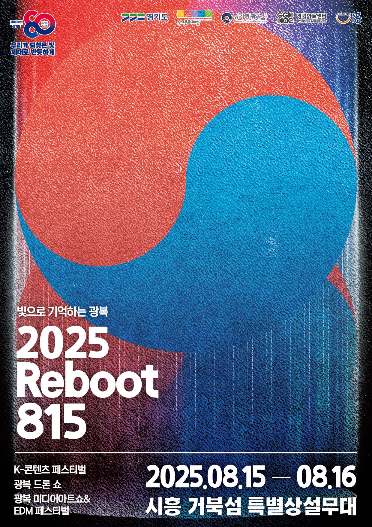 8월 15일과 16일까지 이틀간 시흥 거북섬에서는 `빛으로 기억하는 광복`이라는 부제로 `2025 리부트 815` 행사가 개최된다. K-콘텐츠 페스티벌, 드론쇼, 미디어아트 쇼, 일렉트로닉 댄스 뮤직(EDM) 공연, 체험 전시 등으로 구성된 경기도 주최의 문화예술 종합 축제다.